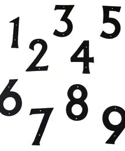 Husnumrene i dimensionerne sort 16 cm hænges på væggen ud for hinanden eller i hver sin højde.